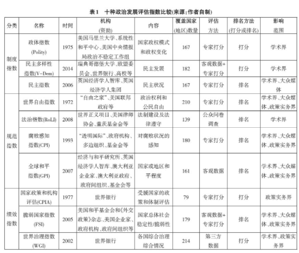 关 键 词:政治发展 政治评估 评估指数 指数比较 再评估