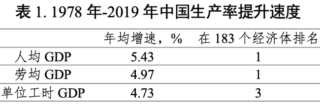 按横向纵向可比性最好的关于经济增长的数据库——宾州大学世界表的数据,1978年到2019年41年期间,中国生产率提升速度在全球名列前茅。其中,人均GDP年均增速达到5.43%,劳均GDP年均增速达到4.97%,两者均位列183个经济体当中第一位。单位工时GDP年均增速4.74%,位列第三,低于韩国5.08%和爱尔兰的4.97%的水平。而同时期包括发达国家和广大发展中国家在内的其他经济体,这三个生产率指标年均增速低于甚至远低于3%。从这样的比较看,特别是考虑到作为过去这段时间全球人口规模最大的国家,中国能持续这么长时间生产率追赶,的确是不俗的成就。