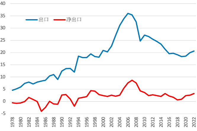 改革开放以来特别是加入WTO以来,中国经济在快速增长的同时,对外依存度也迅速扩大。2008年金融危机之后这种扩大势头开始逆转,近年来净出口占GDP之比降到较低水平。