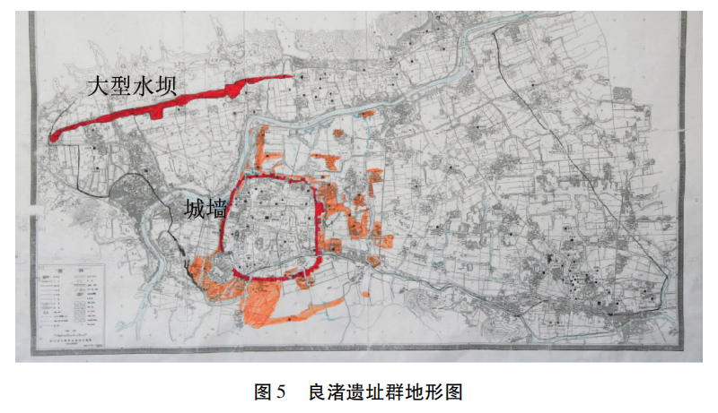 距今约5000年前的良渚文明是长江下游区域史前文明的高峰。经过考古学家估算,修建城内高台、内城、外城和巨型水坝的工程量十分巨大,大约需要3600万个劳动日,如果动用1万劳动力连续工作,也需要10年的时间才能完成(图5)。如果仅仅依靠良渚古城内及其附近的居民是根本不可能完工的。这表明良渚社会的最高统治者动员了归其统辖的相当广阔地域的人来共同参与这一超大型公共设施的兴建。由此可见,当时良渚社会的最高统治者已具有动员和组织人力的权威和能力。