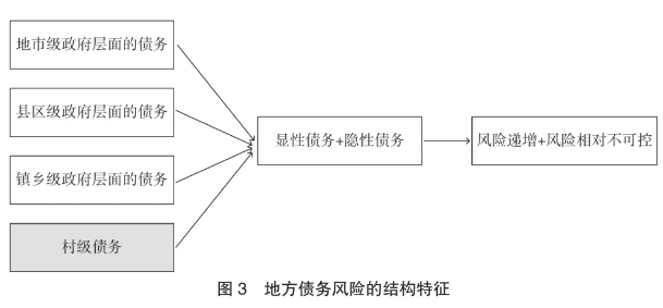 再从中国地市级政府及以下层级的结构来看,理论上主要包括地市级、县区级、镇乡级政府,此外还有协助乡镇政府开展工作的村民委员会。2003年实施的“乡财县管”政策造成的一个突出问题是,镇乡级政府财政体系逐步收归到县区级政府层面,融入县区级政府的大一统财政体系之中,因而也就逐步失去了相对独立性。在这种格局之下,镇乡级政府和村级债务问题也纳入县区级政府层面,镇乡级政府和村级的显性债务和隐性债务也就顺理成章地归并到县区级政府层面。