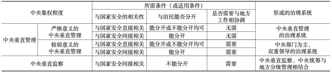 以下我们按上述三种类型分别考察中央垂直管理改革,梳理三种类型的发生领域,分析它们与国家安全的相关性。