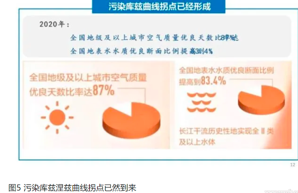 伴随着城镇化的深入,“大气污染、水污染与噪音污染”三大污染不断加剧,发达国家的经验表明,城镇化中期是“三大污染”最为严重的时期。在中国的快速城镇化进程中,大城市的“垃圾围城”、卫星城的中小产权房盛行等问题频发,加剧了“三大污染”对城市整体环境的威胁。根据“污染库兹涅兹曲线”的定义,在工业化的过程中,伴随着人均GDP的增加,环境污染的程度将呈现上升的趋势;随着人均GDP的进一步提高到人均一万美金之后,环境污染程度会呈现逐年呈现下降的拐点。而实际上,近年来随着我国城镇化拐点的来临,如图5所示,全国地级市的空气质量与水质达标率显著提升,表明我国已成功推动污染库兹涅兹曲线拐点的到来。