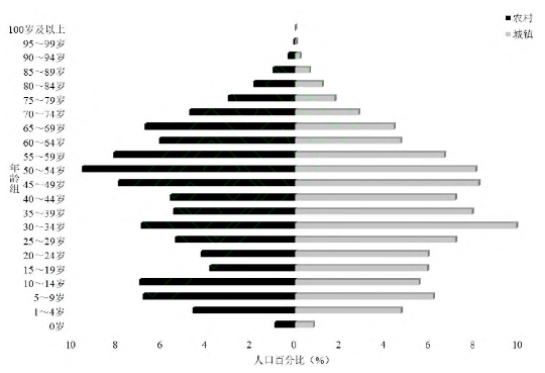 图1 城乡人口年龄金字塔
