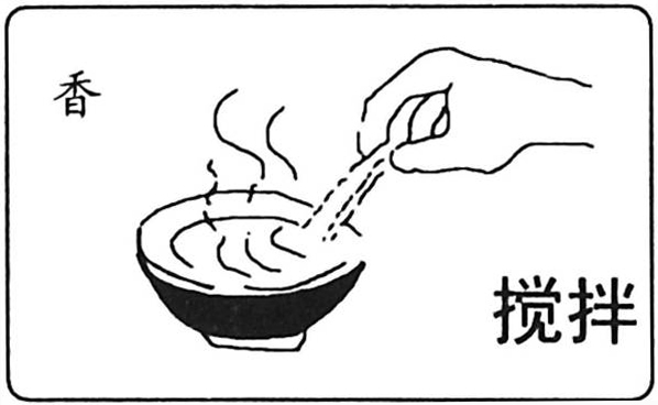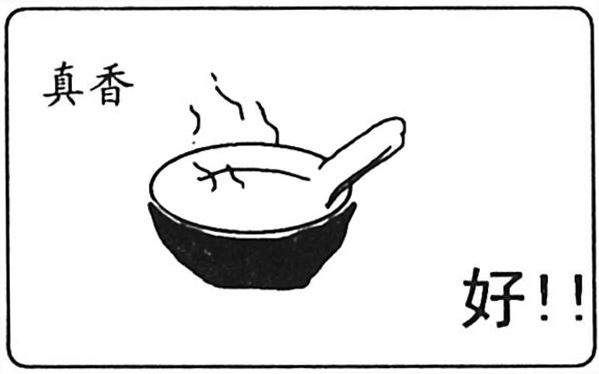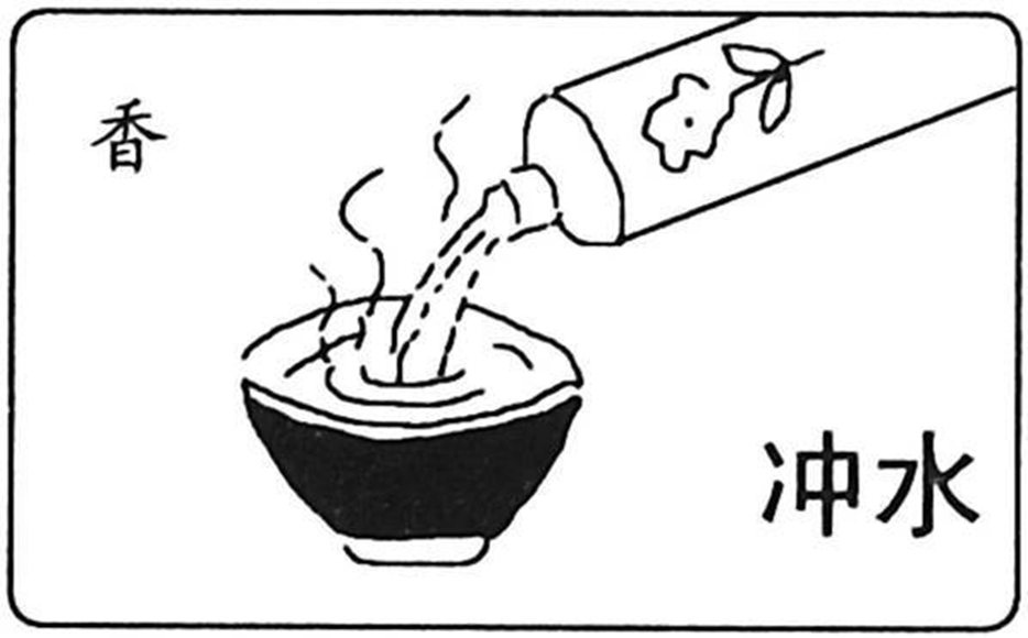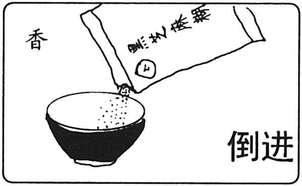 12个汉字,可以有多种的读法:(1)倒进,冲水,搅拌,好!香,香,香,真香!(2)香,香,香,真香!倒进,冲水,搅拌,好!(3)倒进,香!冲水,香!搅拌,香!好!真香!(4)香!倒进;香!冲水;香!搅拌;真香!好!