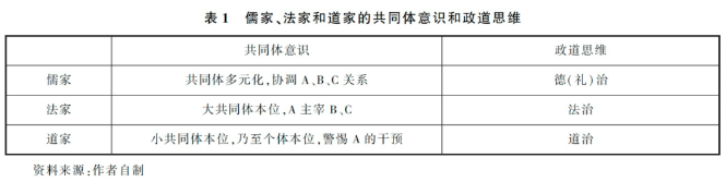 每一个分配理论都必须回答一个至关重要的问题,即在怎样的共同体内分配财产。儒家、法家和道家有非常不同的共同体意识。简言之,儒家坚持共同体多元化,协调大小共同体关系;法家坚守大共同体本位论,倡导国家优先和君权至上;道家秉持小共同体本位论,对个体生存和个体价值比较关注,警惕国家干预。