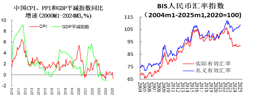 原因六:近年一般物价走势偏弱与本币实际汇率较大幅贬值推高顺差。从开放经济增长规律形态看,一国在生产率快速追赶阶段本币实际汇率会呈现逐步升值趋势,在推动本国经济结构转型同时保持国际收支大体平衡,并支持本国人均收入较快提升与收敛。这个增长逻辑又被称作巴拉萨-萨缪尔森效应,在国际比较经验中有相当程度表现,我国新世纪初年人民币持续升值伴随高景气度增长,体现巴拉萨-萨缪尔森效应作用【15】。