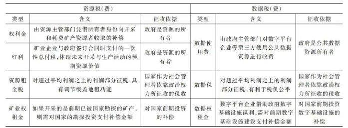 表1 资源税(费)与数据税(费)比较