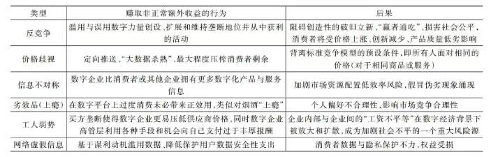 表2 数字平台赚取非正常额外收益的类型和后果