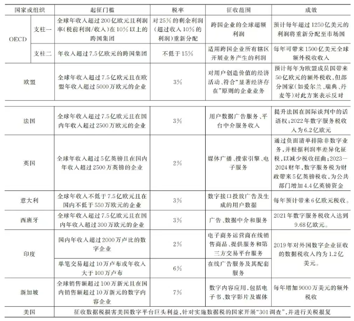 表3 国际组织与主要国家数字税征收实践比较