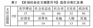 事实上,如果对20世纪30年代之中国历史学研究进行综述性梳理,则可概见其新史学研究的基本取向及其学科内在构成。据1936年10月20日上海大学史地社会学研究室主编之《史地社会论文摘要月刊》(第3卷1期至9期)选目,我们分类整理如下(见表2)。