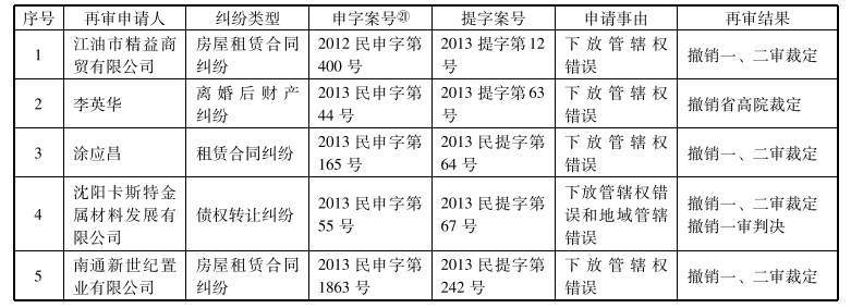 最高人民法院再审后纠正下放管辖权案件一览表