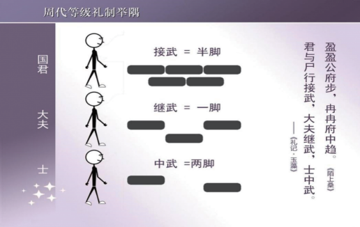 《礼记·玉藻》:君与尸行接武,大夫继武,士中武。徐趋皆用是。