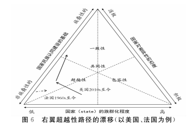 超越性路径既有明显的进步性也有明显的局限性。按照吴孝刚的分析,右翼超越性路径不能有效保护少数民族的文化,不能有效阻止少数民族在政治经济上的边缘化,也不能有效防止民族冲突。这是其本质决定的:“通过将人抽象为无种族、民族、宗教、阶级甚至性别差别的‘无性状’的一律平等的个体,有力地纠正了历史上公然以特权和等级为特征的不公正现象……但是这一无视个体处境(背景)差异和阶级差别的权利正义观,遭到自由主义内部和马克思主义的挑战。”耶尔·塔米尔(Yael Tamir)认为:“公民版本的民族主义提供了一个过于抽象和法条主义的模式。虽然宪政、普遍权利和平等成员资格是政治行动的宝贵准则,但它们只涵盖了人们生活的有限范围。更重要的是,它们为社会和政治合作提供的基础过于薄弱。”基础薄弱意味着经不起危机的冲击。当国家面临的内外部竞争加剧、经济安全水平下降、收入不平等扩大,多数族群(特别是其中的弱势成员)往往就不再宽容差异性,拒绝分享权力和资源,使右翼超越性路径向左顶点偏上位置移动,甚至退回到一致性导向,这就是近年来西方“威权民粹主义政党”和美国福音民族主义兴起的机制。少数族群则更容易走向地方民族主义甚至分离主义,抗议“公民同化”,迫使国家分享权力、包容差异,这就是20世纪60年代发生在法国科西嘉、阿尔萨斯、布列塔尼和奥克语地区的故事。