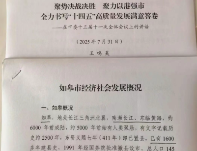 图7.晚上,市委书记王鸣浩同志畅谈[以港兴市]要点,我表支持!并建议“跳出本地看如皋港”,强化与上游重庆(距1500公里)、武汉及下游苏州、上海等节点城市合作,做好散货转运和集装箱束拼业务,当好“中国如派大枢纽”!