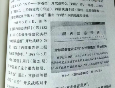 图4.交流中,提及修泽1988年提出的“四沿”(沿海.沿江.沿边.沿干线)开放战略,由新华社内参上报中央(后被釆纳)。现在,国家正着力发展“沿长江经济带”。